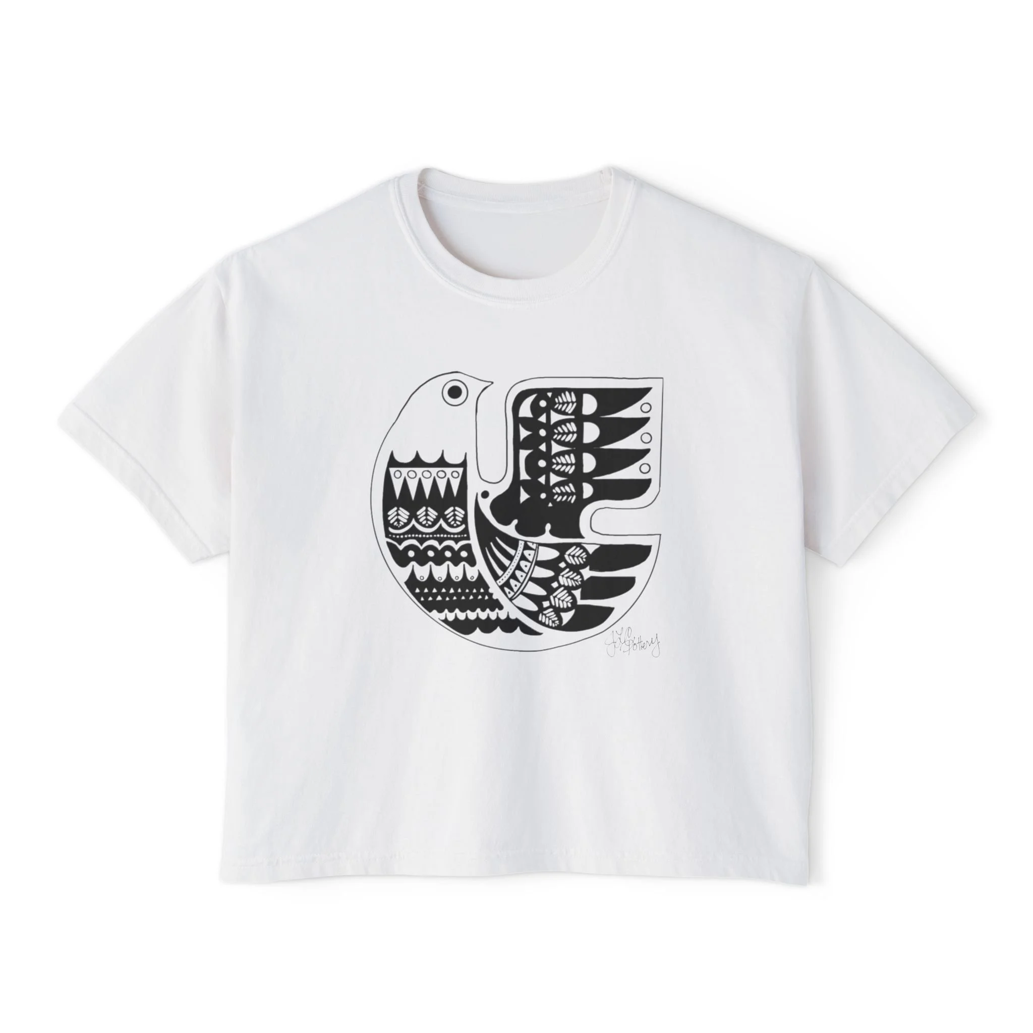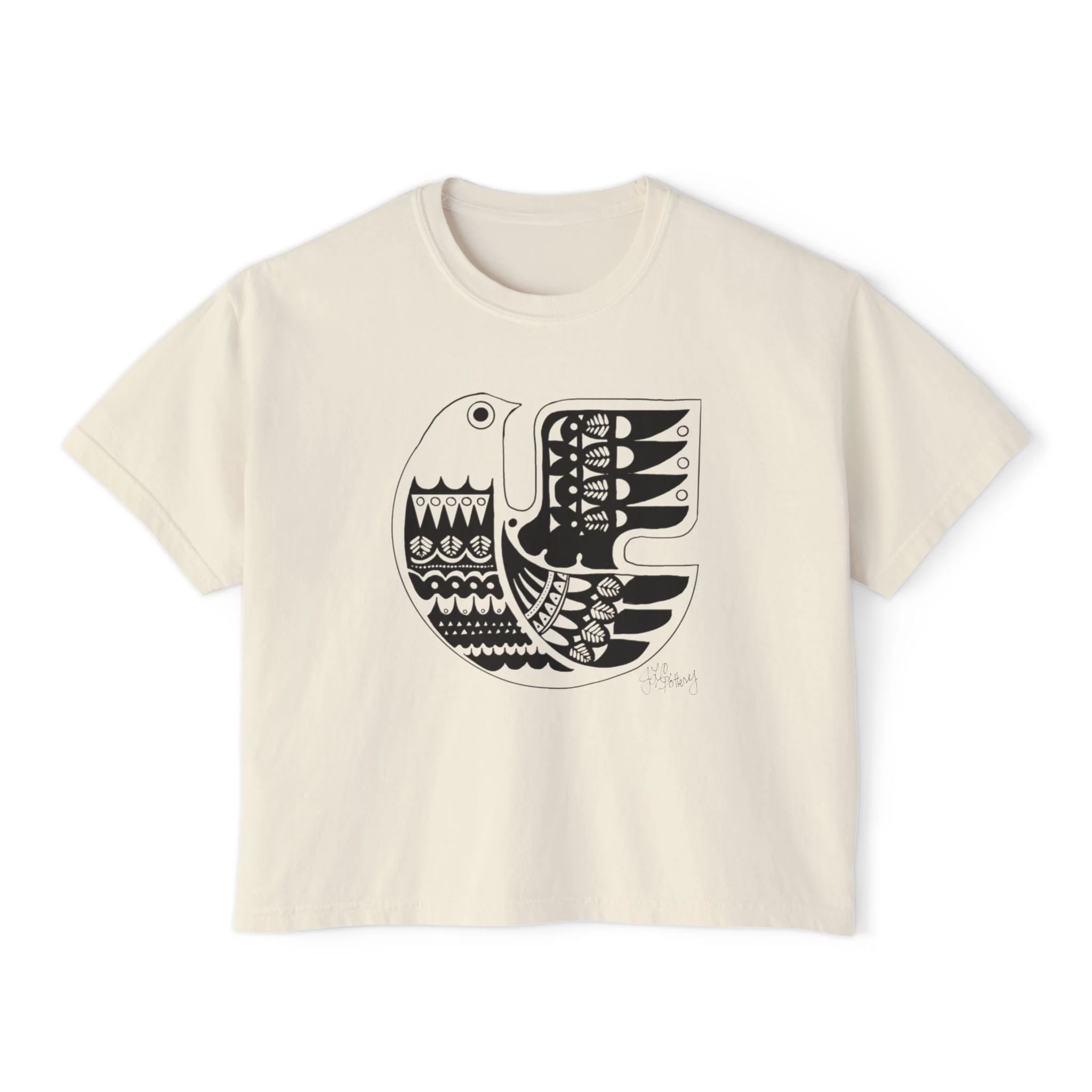 T-shirt Soul Bird Design Tee, Finnish Sielulintu Women's Boxy Tee, Ancient Folklore Shirt, Hand Drawn Graphic Top, Unique Bird Art Clothing